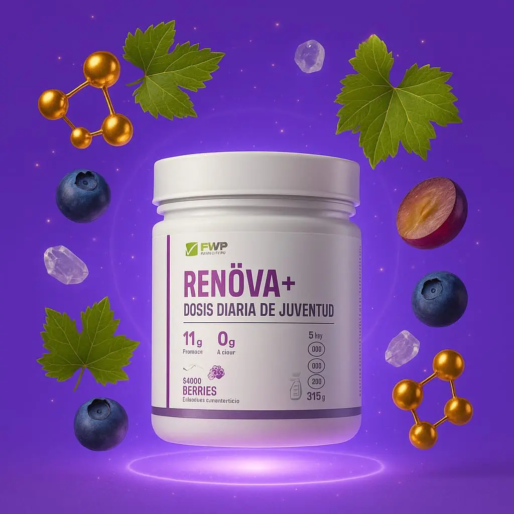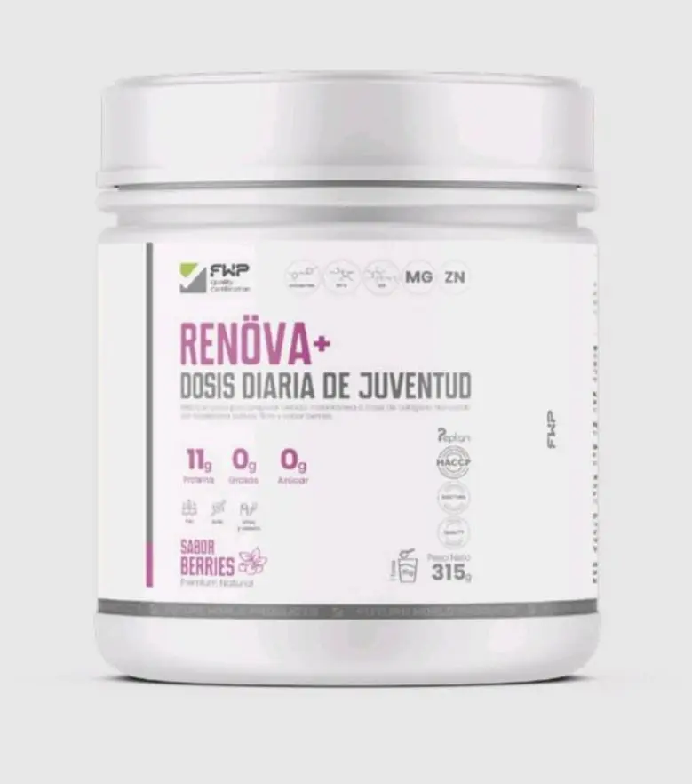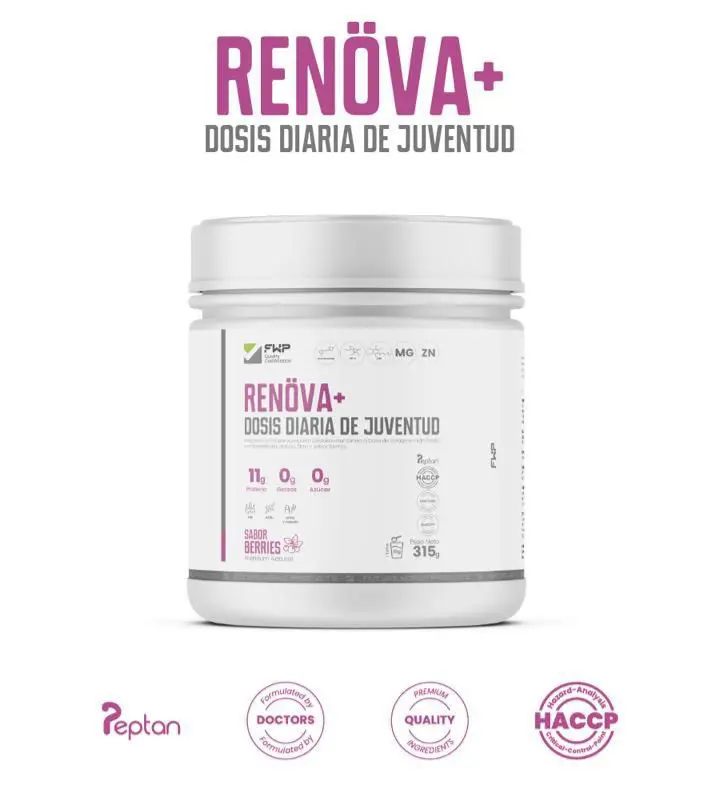 RENÖVA, es mucho más que un colágeno: es tu ritual diario para revitalizar tu piel, cabello, uñas, articulaciones y sistema inmune. Su fórmula contiene bio-péptidos activos de colágeno hidrolizado Peptan®, reconocidos a nivel mundial por su alta absorción y efectividad.